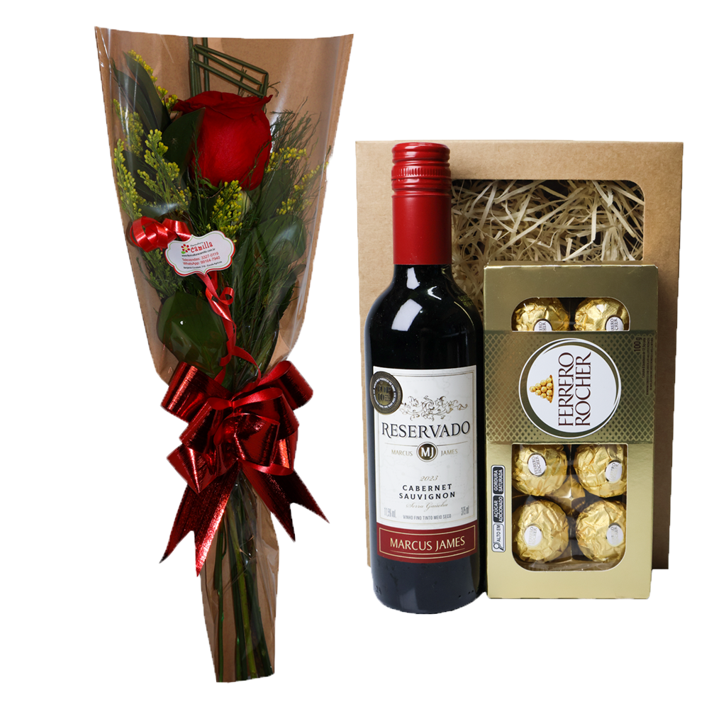 Ramalhete de 1 Rosa Imp. Envelope + 1 Mine Box Vinho