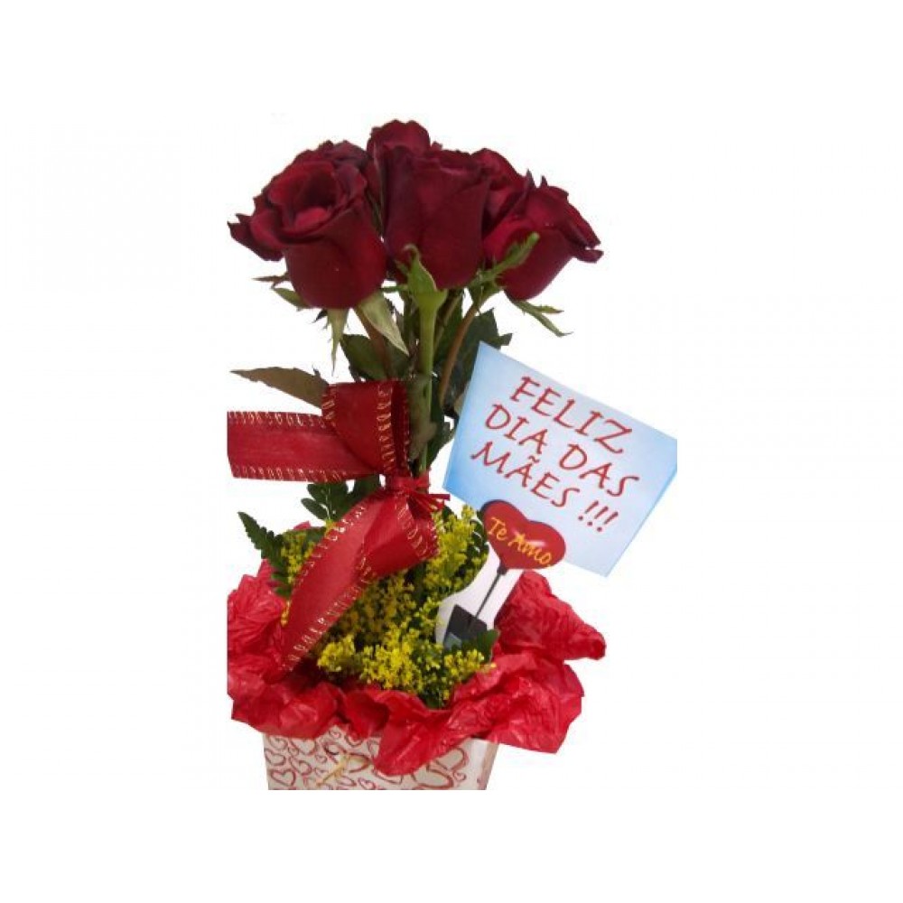 Topiaria com 06 Rosas Vermelhas Nacionais, acompanhada com plaquinha de dia das mães;