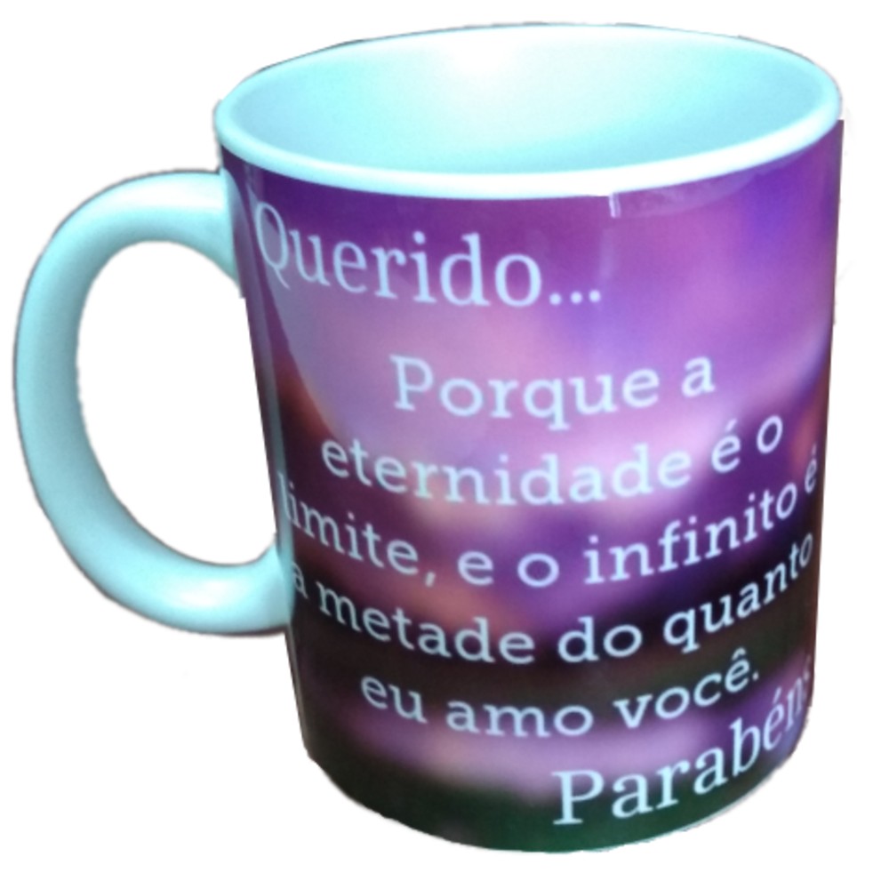 Linda caneca personalizada escrito"QUERIDO... PORQUE A ETERNIDADE É O LIMITE, E O INFINITO É A METADE DO QUANTO EU AMO VOCÊ. PARABÉNS! ", não deixe de presentear nesta data tão especial a pessoa que sempre está ao seu lado.