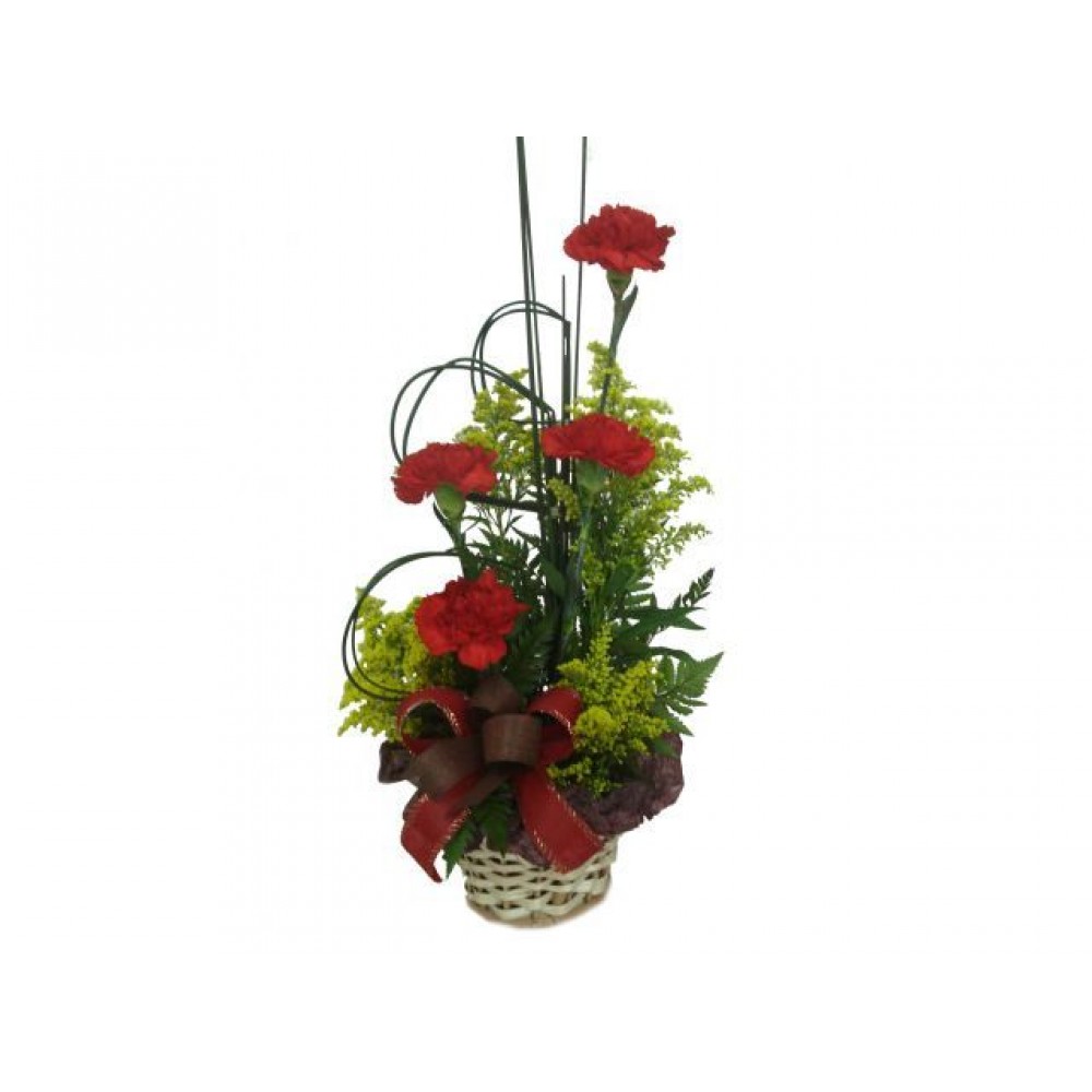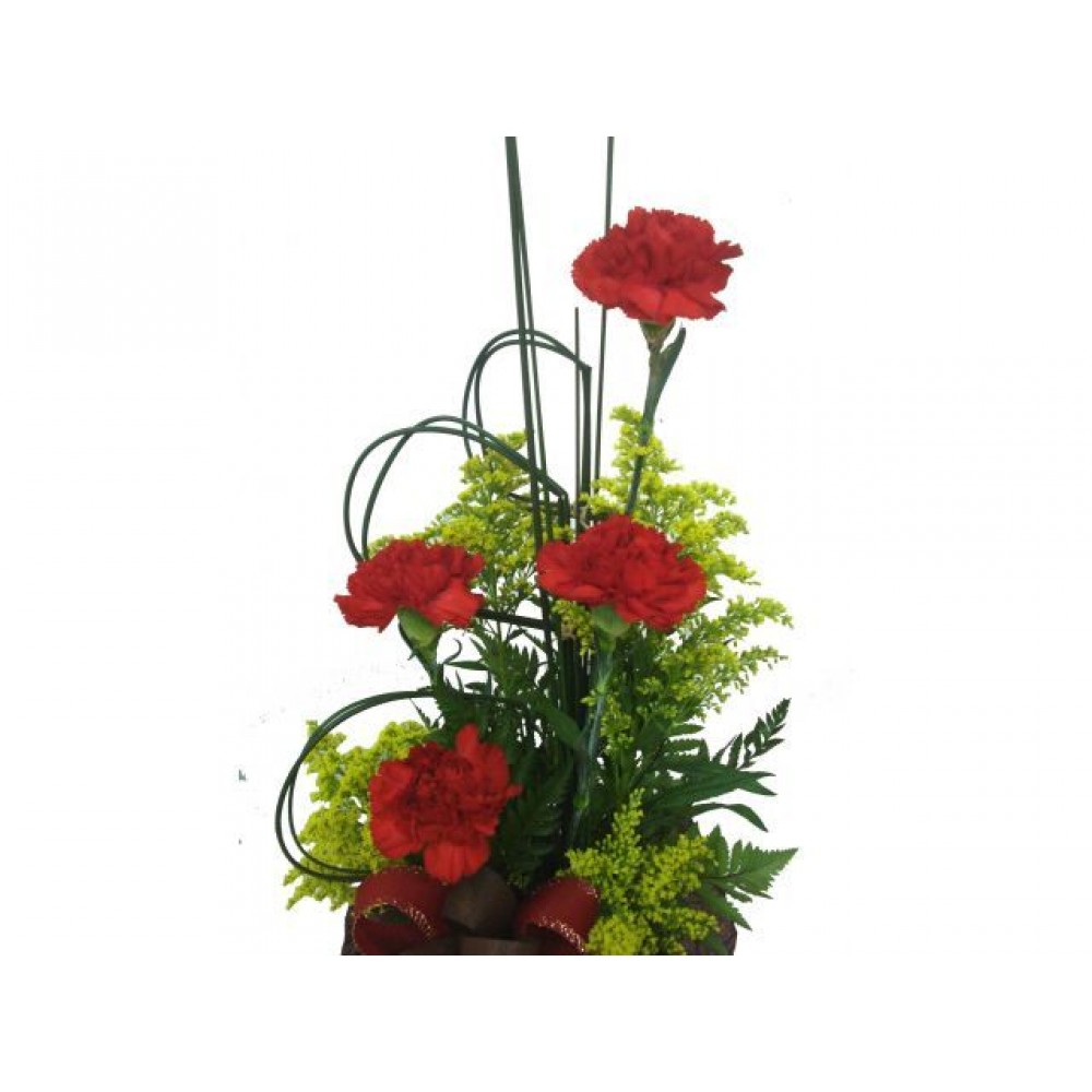 Arranjo com 04 cravos vermelhos e complementos.